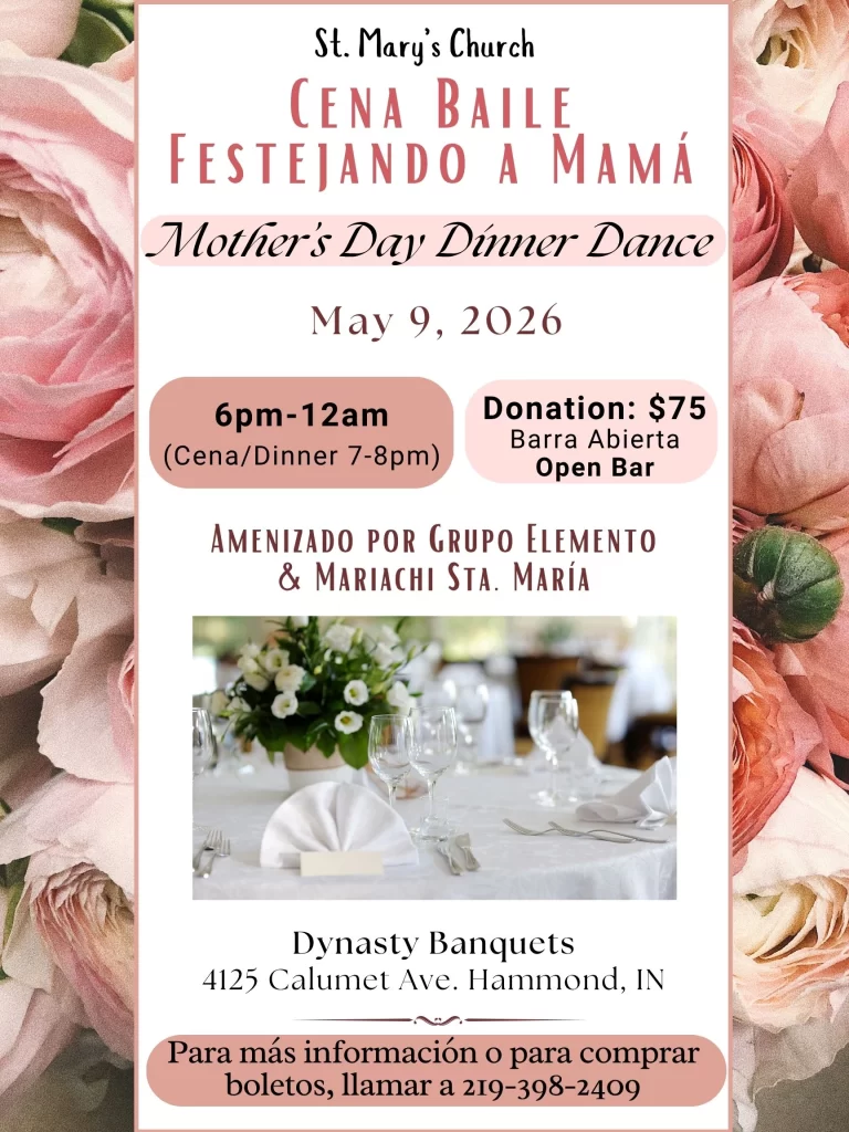 Events 2026 Mother's Day Dinner Dance Cena Baile Festejando a MamáMay 9, 2026 View Events 2025 Festival Kermes Festival de IndependenciaSep 7, 2025 Download Here Gran Rifa Anual Annual RaffleSeptember 7, 2025 Download Here Picnic Parroquial Parish PicnicSep 20, 2025 Download Here Conferencia 2025 Conference ’25November 14-15, 2025 Download Here Celebracion a el Divino Niño Jesús Sep 18, 2025 Download Here Celebración de Nuestra Señora de Guadalupe Our Lady of Guadalupe Celebration 2025 Download Here Día de Acción de Gracias Thanksgiving 2025 Download Here